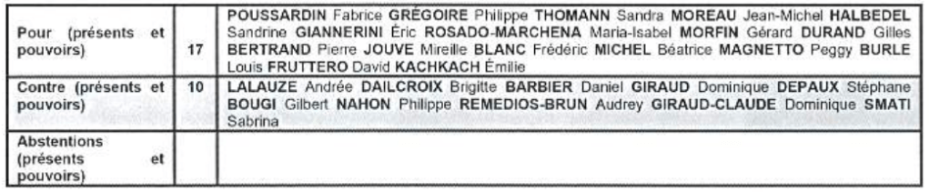 Les votes du conseil :